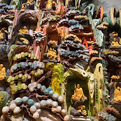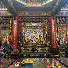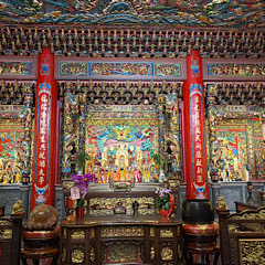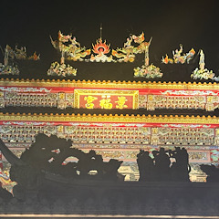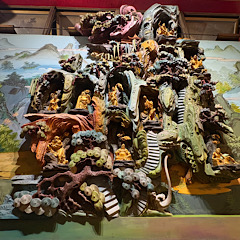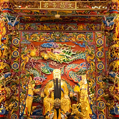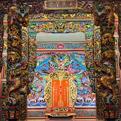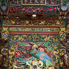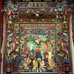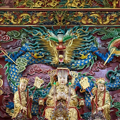 主祭神は福徳正神です。福徳正神というのは道教の中では位が低い神様の様です。1階から3階までお参りするとその豪華さに感嘆します。2階中央は天上聖母媽祖です。3階大殿の両側にある「十八羅漢」の彫刻も自然と一体化している姿が宗教芸術の美を表しています。