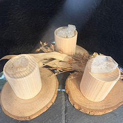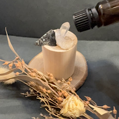 お好きなアロマオイルをウッドの上のパワーストーンに垂らして空間・ブレスレットなどの浄化としてお使いいただけます。